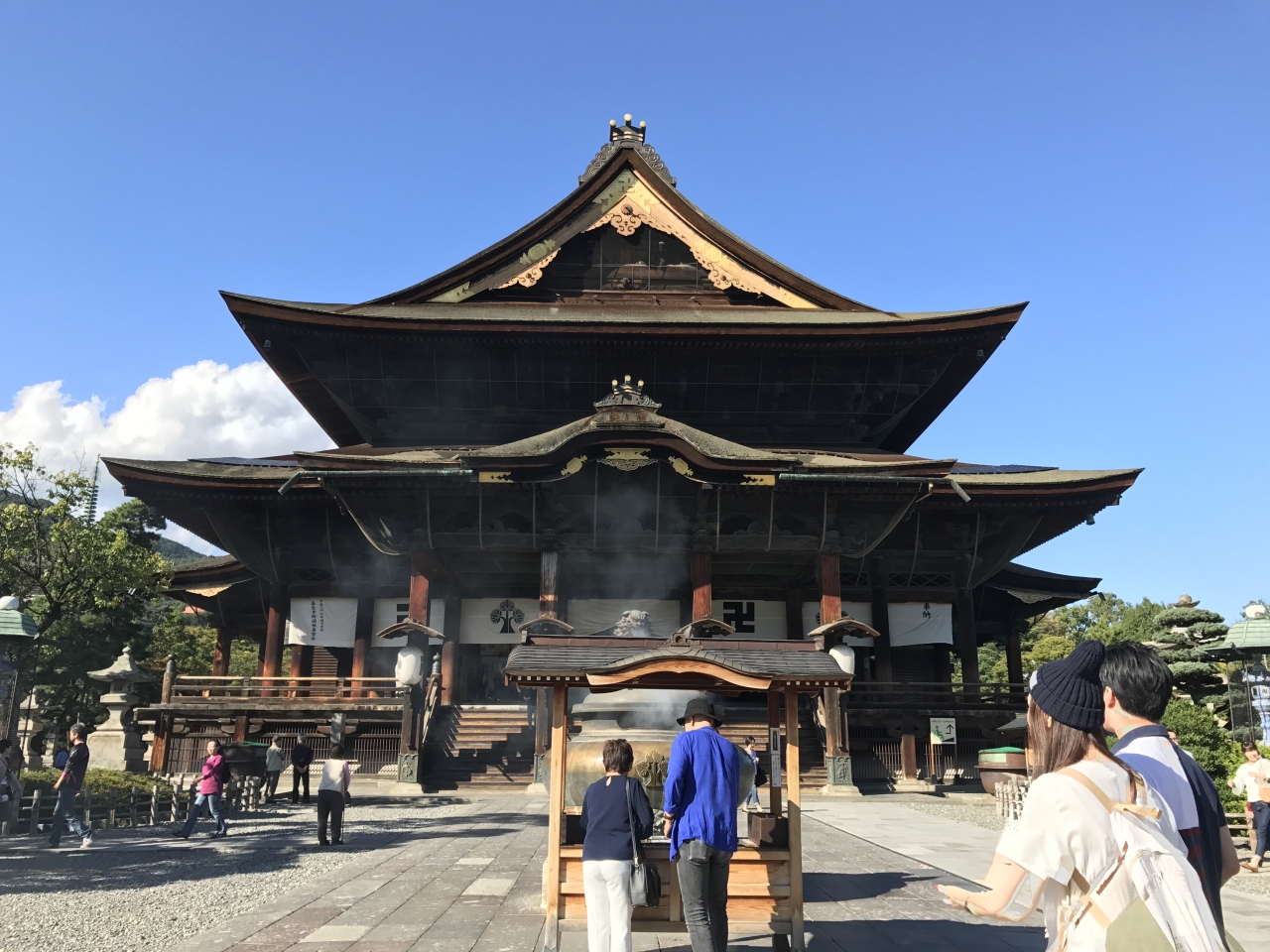 善光寺は見どころが沢山あります。内陣、山門、経蔵はそれぞれ独立した建物で、有料です。この3施設+史料館のセットチケットが1000円なので、それを買うとお得です。1館ずつ買っていたら、1300円以上します。共通チケットを買っておけば善光寺の見どころはだいたい抑えられるので、効率が良いです。修学旅行ブリに来ましたが、今回の見どころは山門でした。南禅寺のように登れるのが嬉しいです。