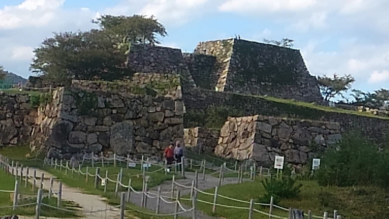 台風一過翌日バスツアーで竹田城跡に行きました。この城跡は、海抜353㍍の山頂にあり、天空の城跡と言われています。雲海のベールに覆われた山城跡を見ることはできませんが、城跡を歩いて偉大な城跡を感じました。ボランティアの人が写真を撮って下さり、おもてなし感最高でした。