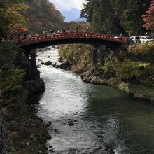 東武日光からバスで5分、歩いて30分くらいです。金谷ホテルの真下にあります。由緒のある赤い橋です。多くの人は遠くから写真を撮っていますが、せっかくですので300円を払って中に入ってみて下さい。個々のスポットがありますので、1つ1つ見て下さい。
