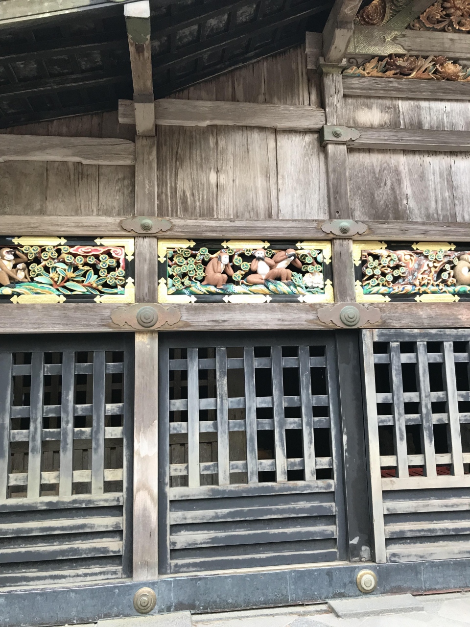 実際に見てしまうと、「ふーん」という感じですが、やはり定番のスポットなので見てしまいます。と言うより、入り口を過ぎて、陽明門に向かう途中にあるので、見過ごすことはありません。人が群がっていました。近くに売店があって、三猿ストラップもありますので、記念にどうぞ。