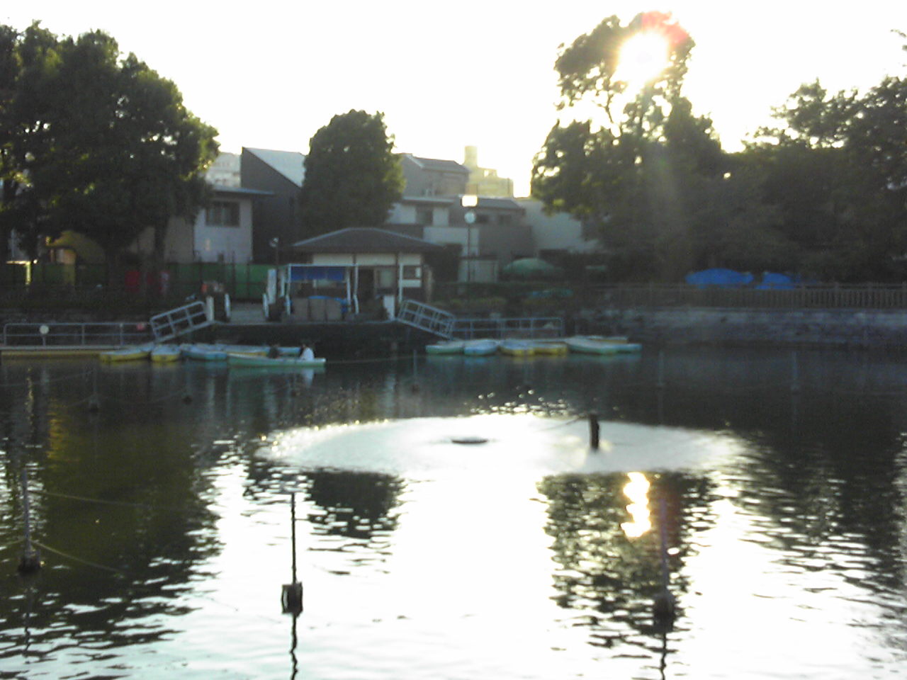 秋の色も濃くなり、紅葉はまだですが、夕日の赤が池に美しく反射していました。