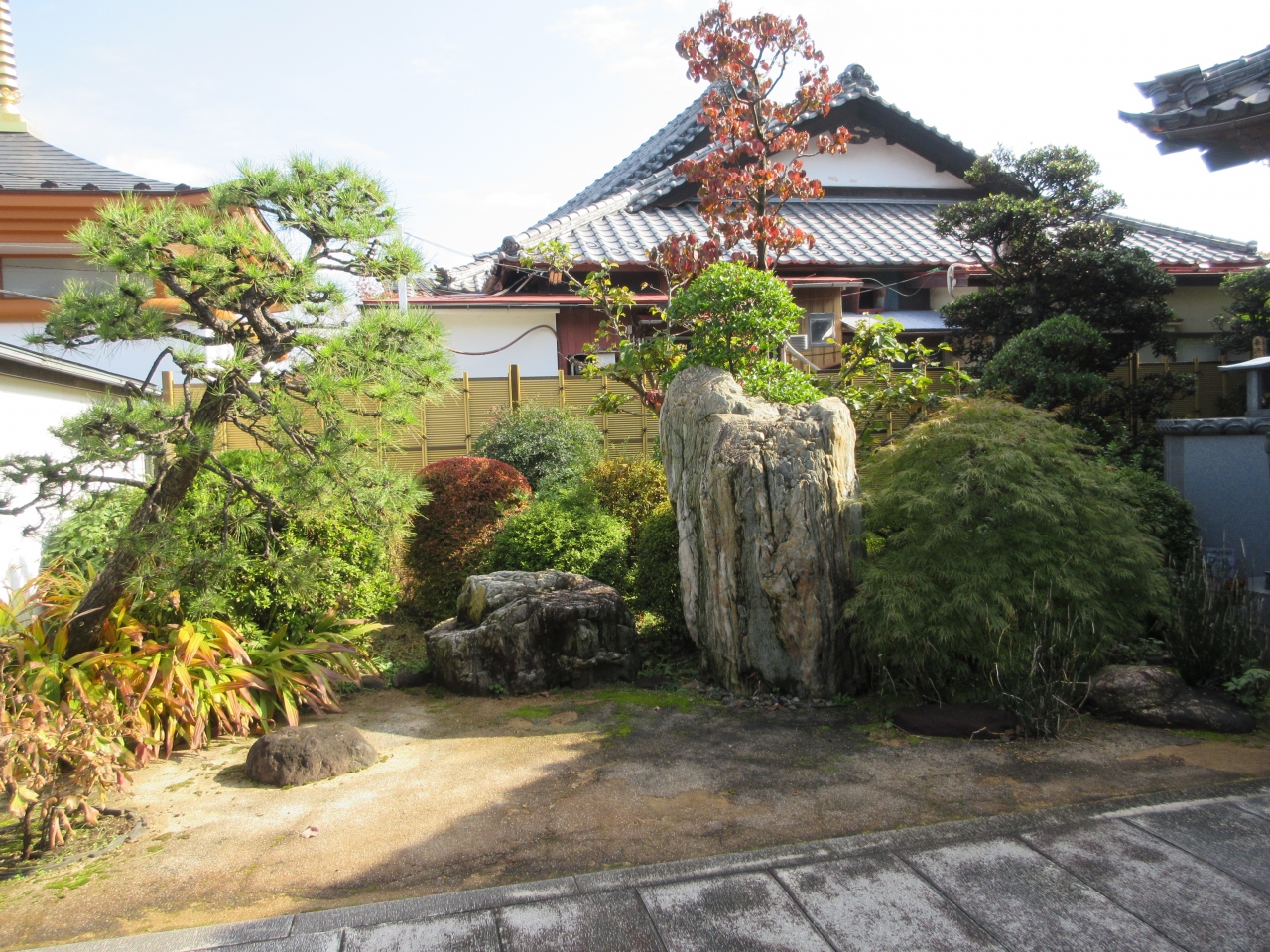 西武池袋線・豊島園駅から1分ほど、江戸時代に誓願寺の塔頭だった11の寺院が集まった十一ケ寺参道の真ん中あたりに建つ浄土宗の寺院です。静かな環境の中に建つ寺院で、重厚な本堂と、枝ぶりが立派な松と大きな石が配置されたこじんまりした庭園が目を引きます。墓地は参道の先に11の寺の共同墓地のようなものがあり、その一角に造られています。受用院だけでは作れなかったであろう趣ある広い参道は、11の寺院が独立し集まり、風情ある雰囲気を作り出していると思います。京都のようなしっとりとした雰囲気が感じられました。