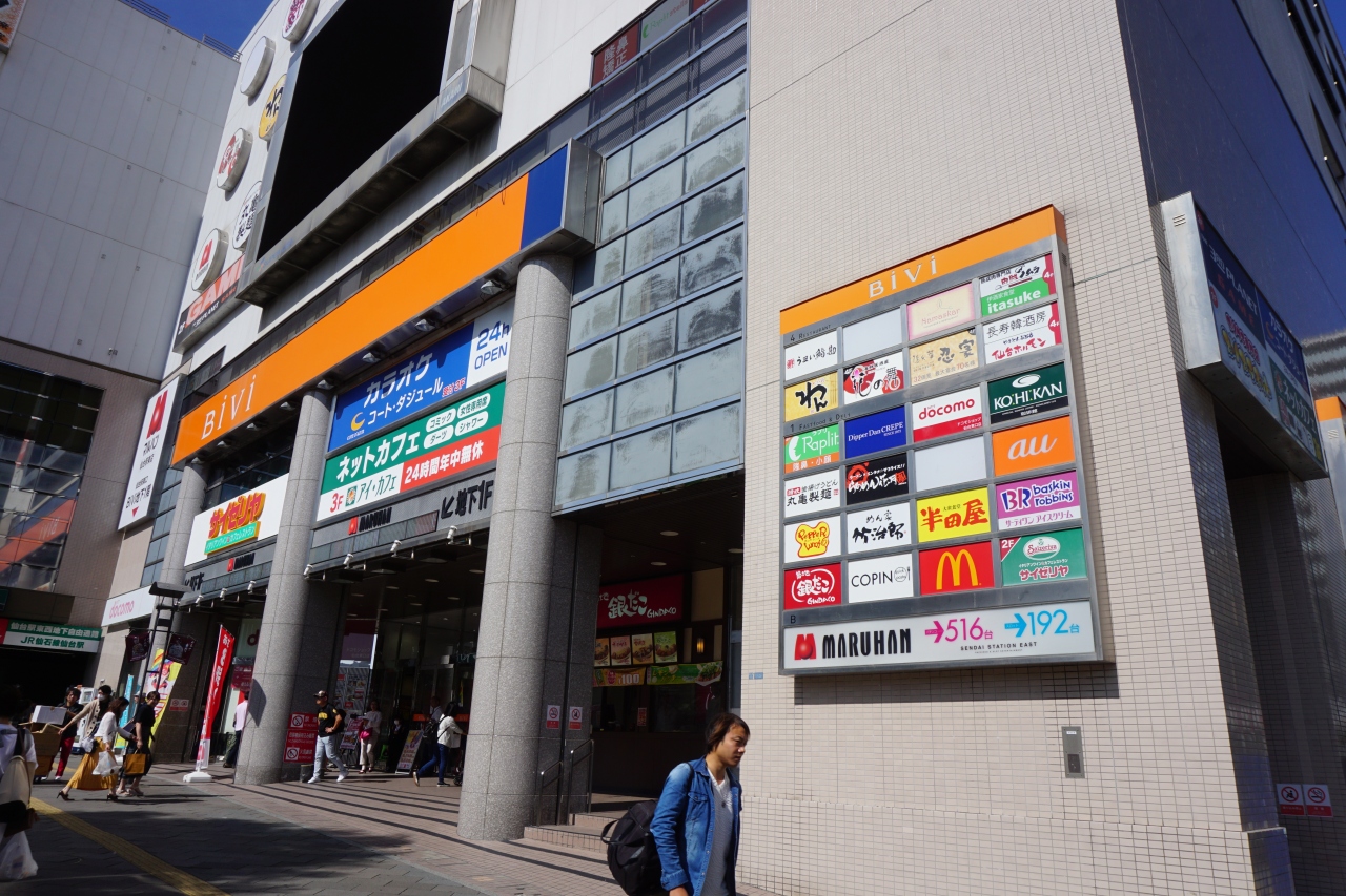 ビビは、仙台駅東口を降りたところにある商業ビル。東口は仙台駅でも裏側にあたるし、仙台駅直結のビルでもないので、あまり目立ってはいないかも。サイゼリアやマクドナルドなど、飲食店はやや低価格帯を選んだパッとしない感じ。観光客にとってはあんまりおもしろくはないと思います。