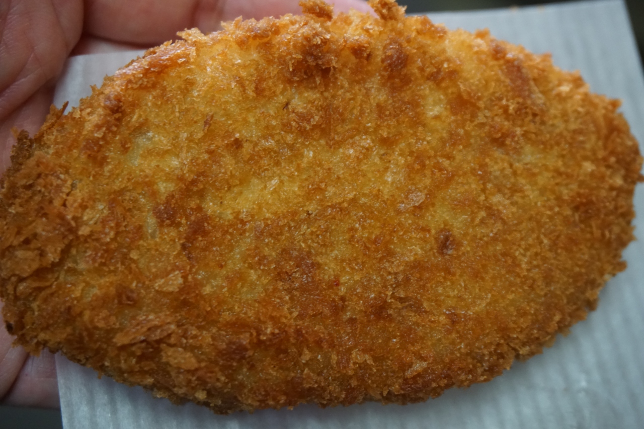 コロッケは、ジャガイモがフカフカとか、肉の味がしっかりしているとか、出汁が効かしてあるとか。うまいコロッケはいろいろ特徴があるものなんですが、ここのはそこまではっきりした特徴はないような。しかし、普通なのにちゃんとおいしい。飽きのこないコロッケなのかもしれません。