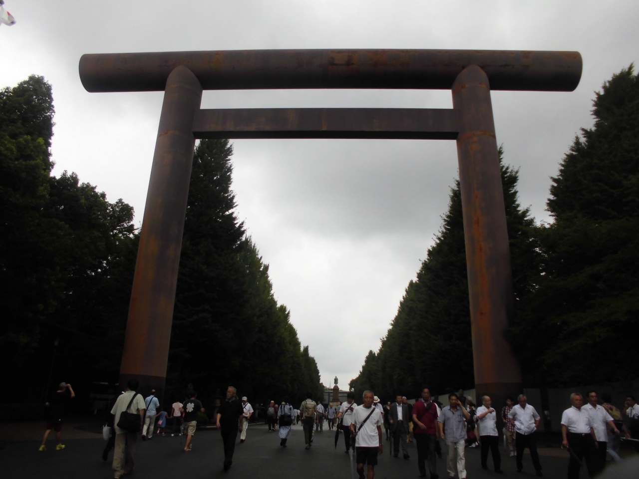 8月15日に行ってきました。この鳥居は武道館に行ったことがある人ならばわかると思いますが、遠くからでもとにかく見えるというのが特徴です。本当に大きい。今まで見た中では一番じゃないかと思います。ただこの辺りは右翼がいて邪魔だと思ったのでこういう人たちが嫌いな人は8月15日は避けるべきでしょう。