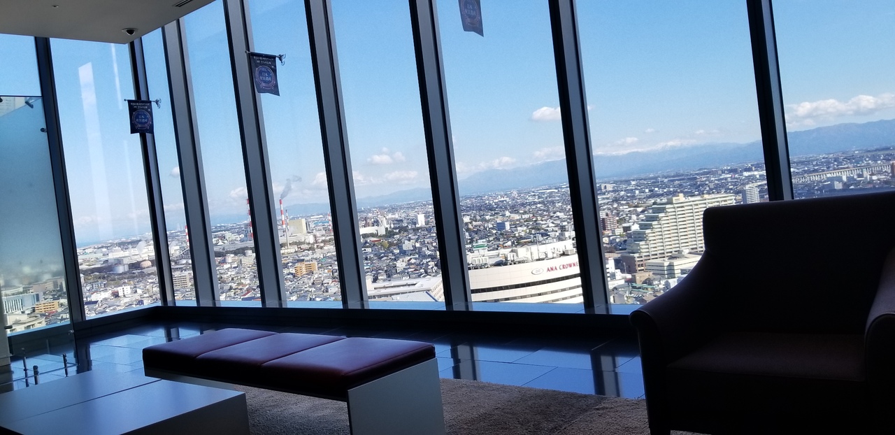 新潟日報ビルの19階に展望フロア、レストランフロアがあります。全面ガラス張りの絶景が広がり、ソファー席で揺ったりと、くつろげるスペースがあります。お天気の良い日は気持ちがよいです。同フロアにある、化粧室は絶景が目の前に広がりとてもきれいでした。また是非行きたいスポットです。