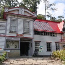 赤い切妻屋根が特徴的で、豪雪地帯の