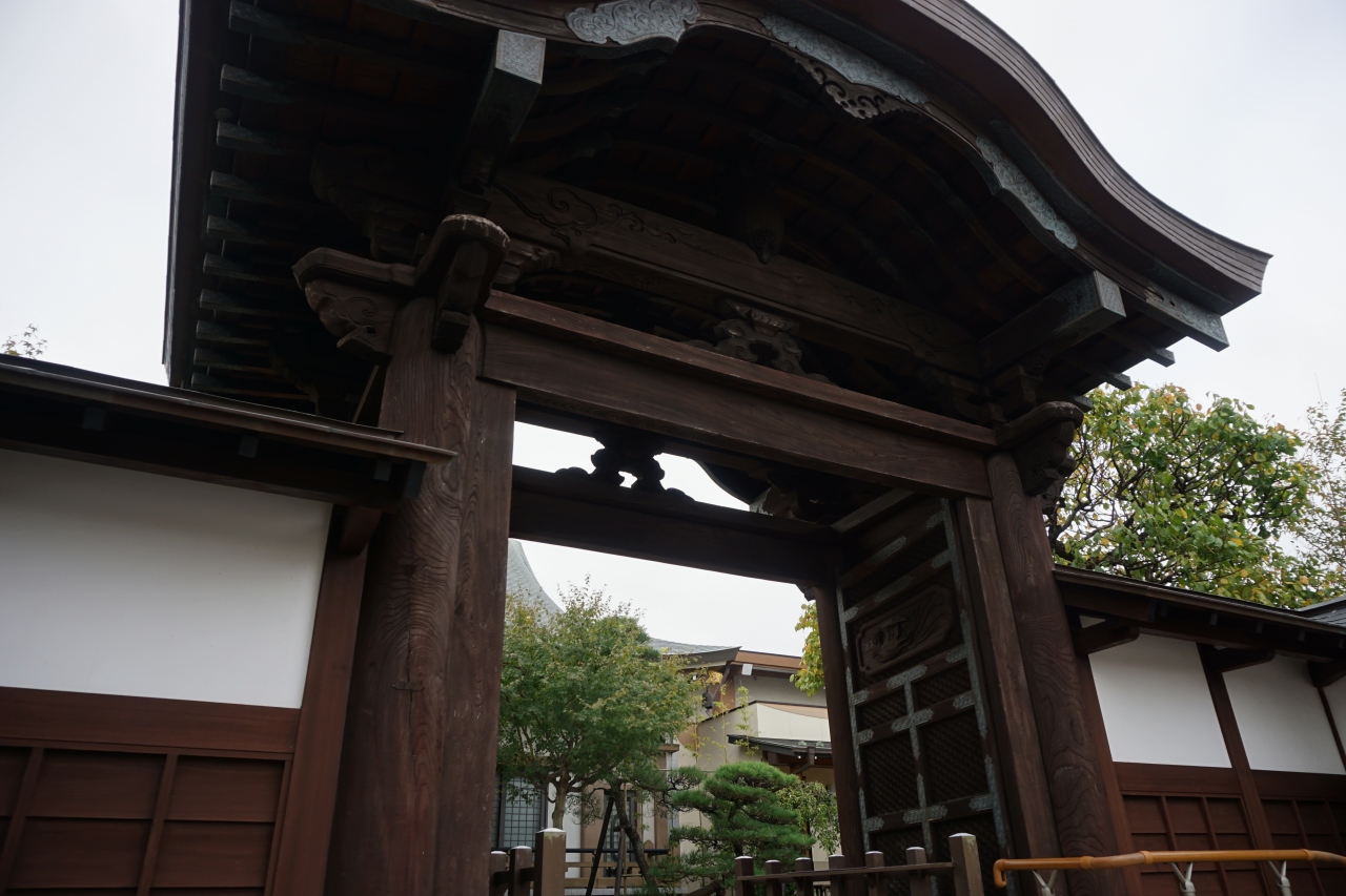 成覚寺の見どころは山門。この門は、仙台藩、四代藩主伊達綱村の生母である浄眼院の墓所に霊屋門としてあったものを移築したもの。正面の前後に唐破風のある向かい門。一見した際の派手さはありませんが、黒漆塗りとか豪華なものです。