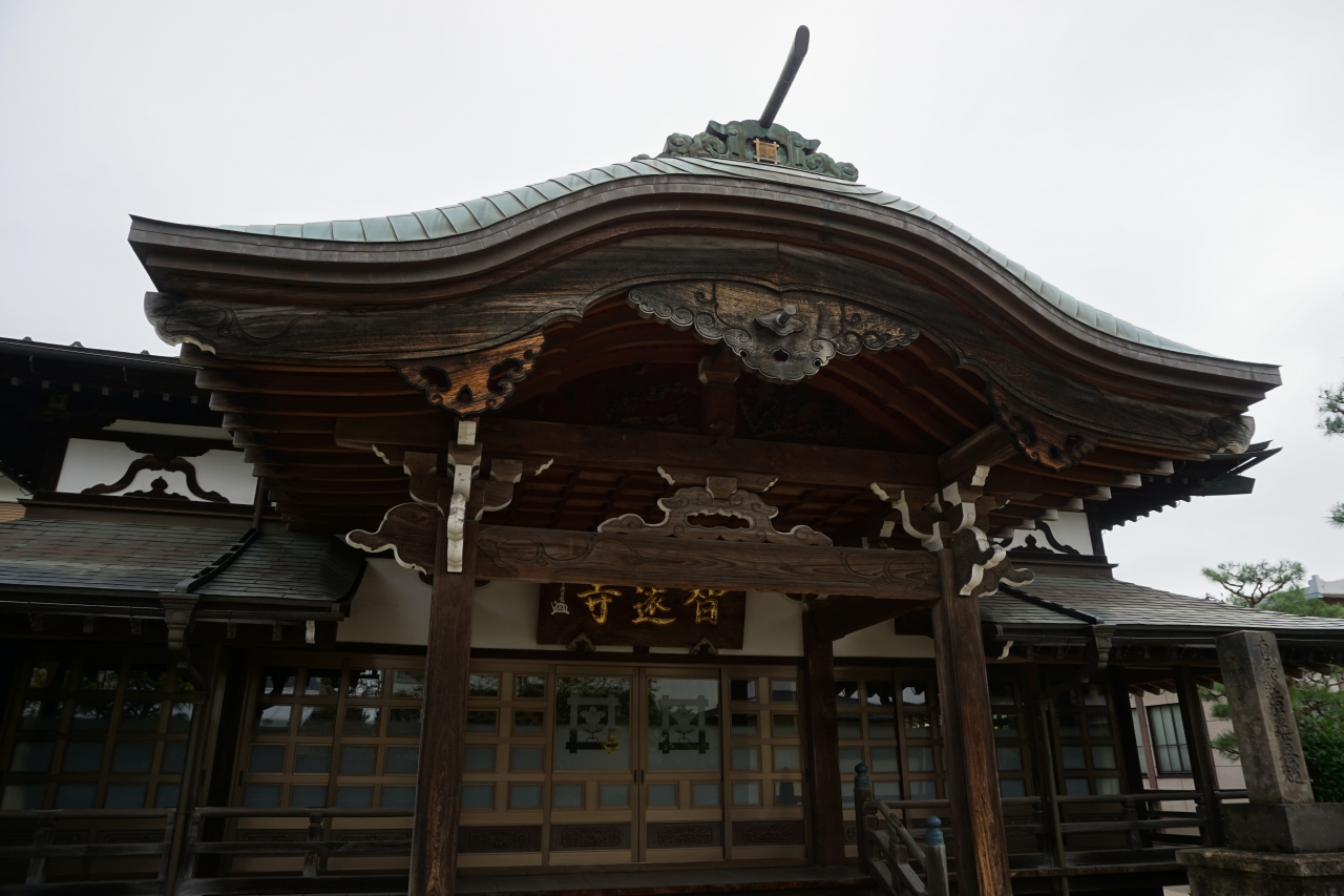 智遠寺は、お寺が多く集まる新寺地区の続き。日蓮宗の寺です。参道を進んで境内に入ると唐破風の立派な本堂が現れて、なかなかの迫力。観光の寺ではないと思いますが、この本堂は見どころでしょう。参道の入り口から入る時は何でもない寺のように思いましたが、ちゃんと奥に入ると立派です。