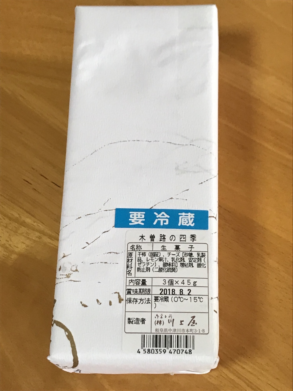 『木曽路の四季』は、干し柿の中にクリームチーズが入った和菓子です。