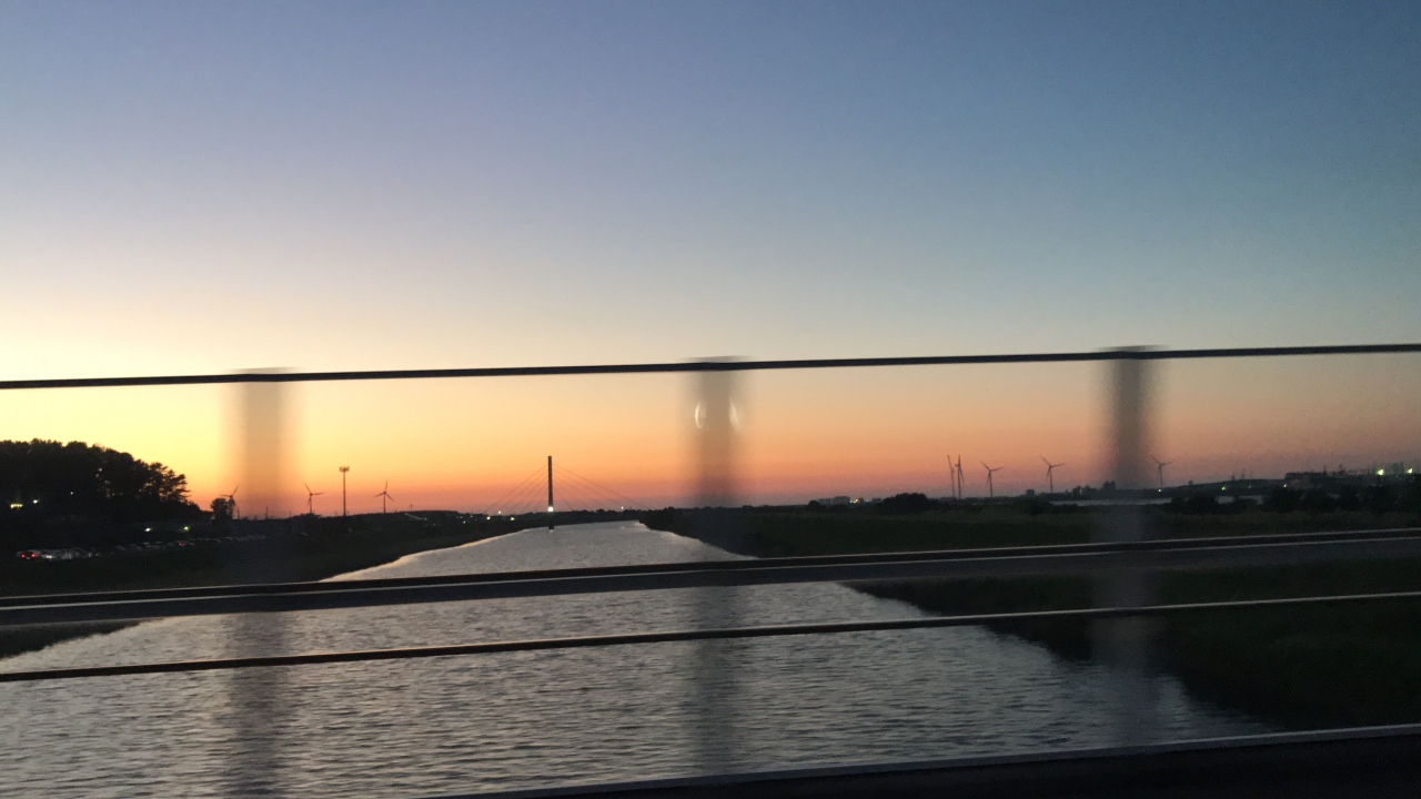 鶴岡から酒田へ行く途中で最上川の橋を渡りました。丁度日が落ちる頃に橋を渡ったので、とても綺麗な最上川をみることができました。偶然、その日は酒田花火ショーがあったので、専用駐車場に立ち寄り、最上川と花火を同時に楽しむこともできた。なんだか得した気分です。