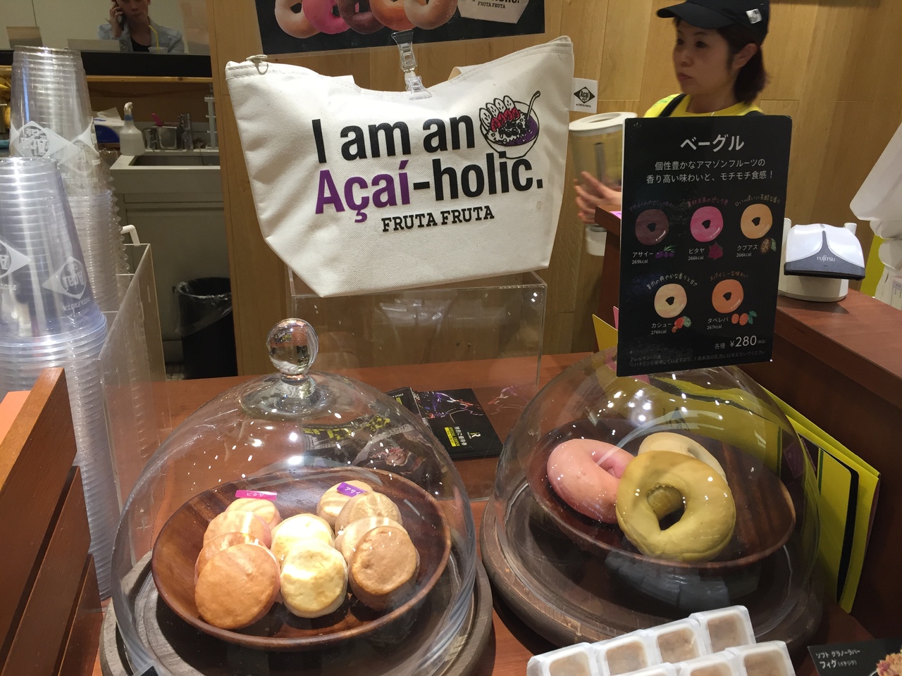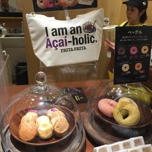 ヒカリエ地下3階のアサイーボウルのお店でイートインできます。アサイージュースやいろんな種類のスムージーがあって試飲もできます。カシューのベーグルとアサイーのスコーンをイートインしました。どちらも温めてもらったらとても美味しかったです。