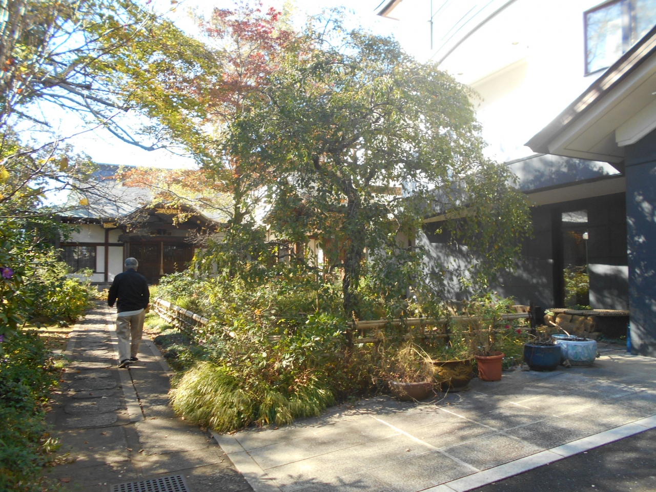 門を入った境内は、植栽が多く、11月だというのに石楠花が咲いていた。梅などの花木も多く、よく手入れされている感じ。