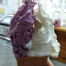 高速のサービスエリアに、いでぼくさんのソフトクリームを売っていますが、ジェラートを食べられるのは、ここ、いでぼくミルクハウスです!なんと牛さんが横にいました。新鮮な、ミルクを使っているんでしょうね。さっぱりとしていて、とてもおいしかったです。