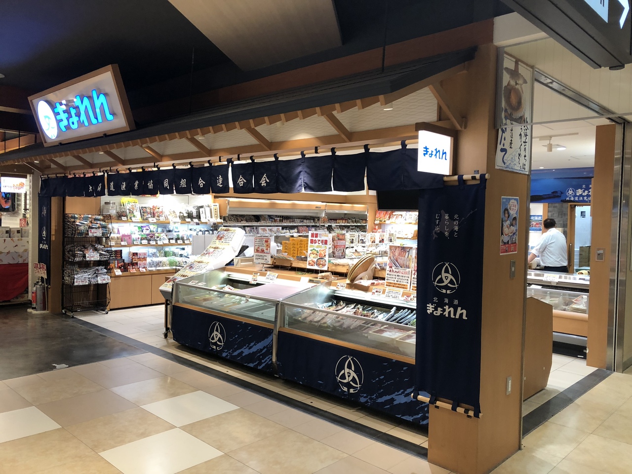 北海道の色々な海産物を取り扱っており、昆布、ホタテ、シャケ、タコなどバラエティー豊富です。空港内のショップなので支払いにカードも使えます。
