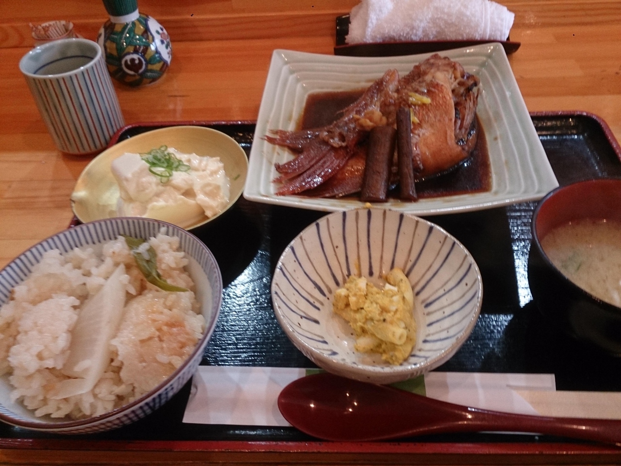 この日の日替わりは赤魚の煮付け。半身かと思いきや、1尾丸々。