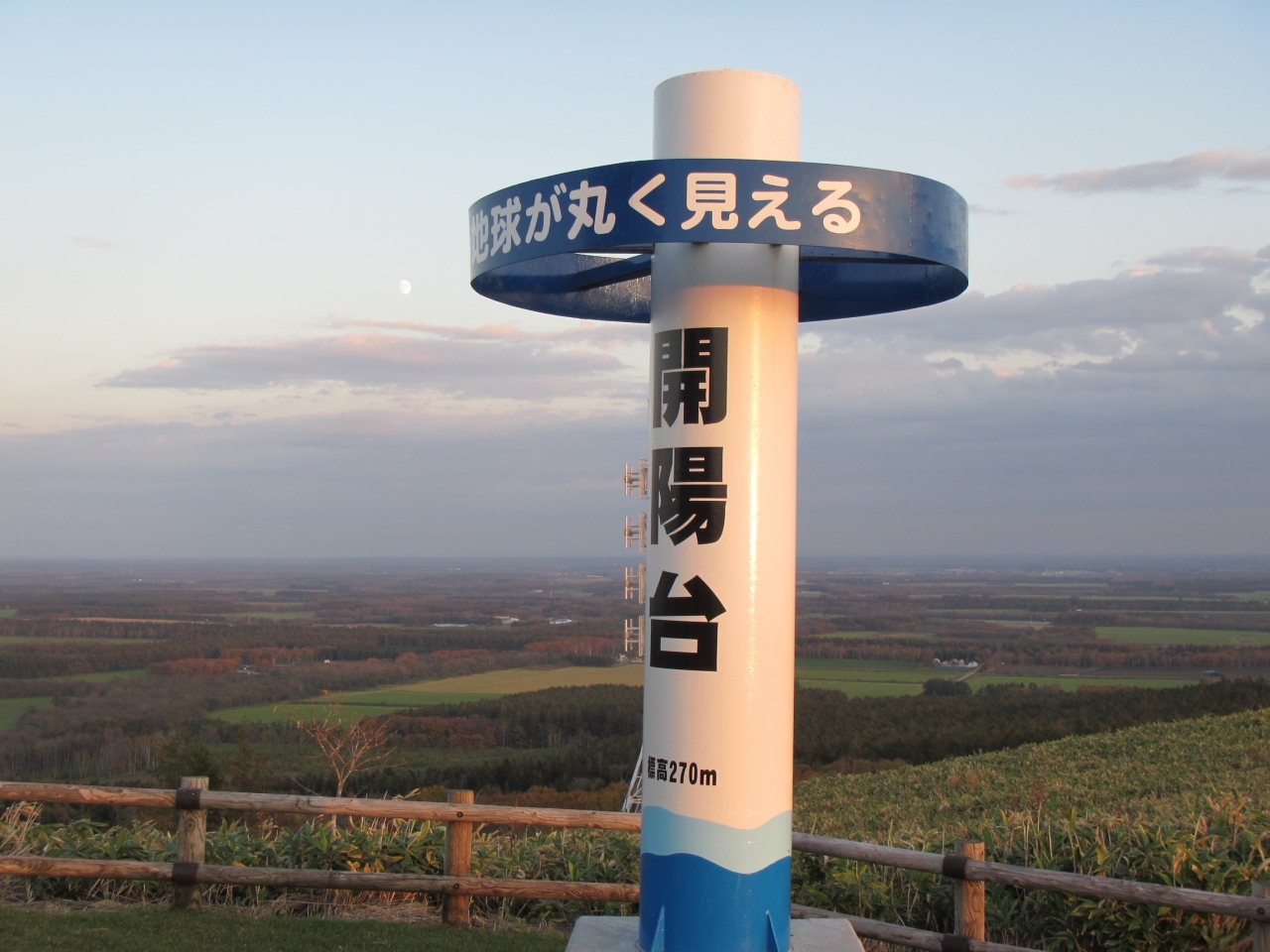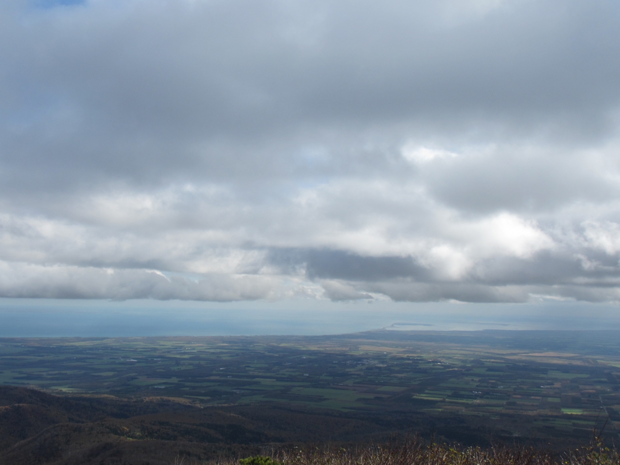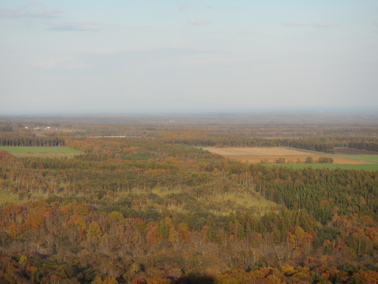 ただ、標高270mの開陽台からでも、まだまだ高さが足りないせいか、きれいな格子状というより、扁平につぶれた角度で、木々に囲まれた畑が幾つもある感じに見えました。