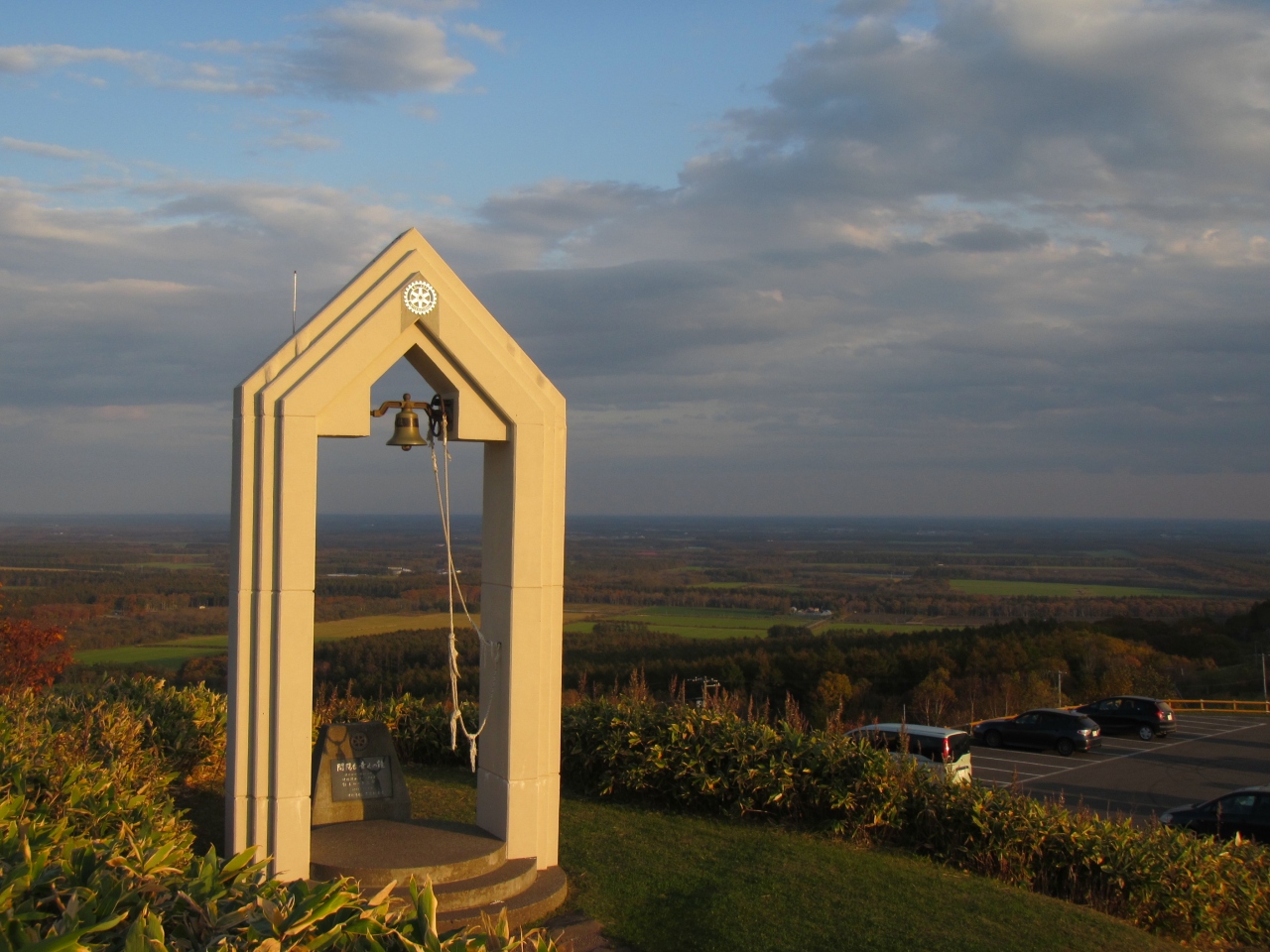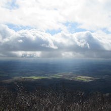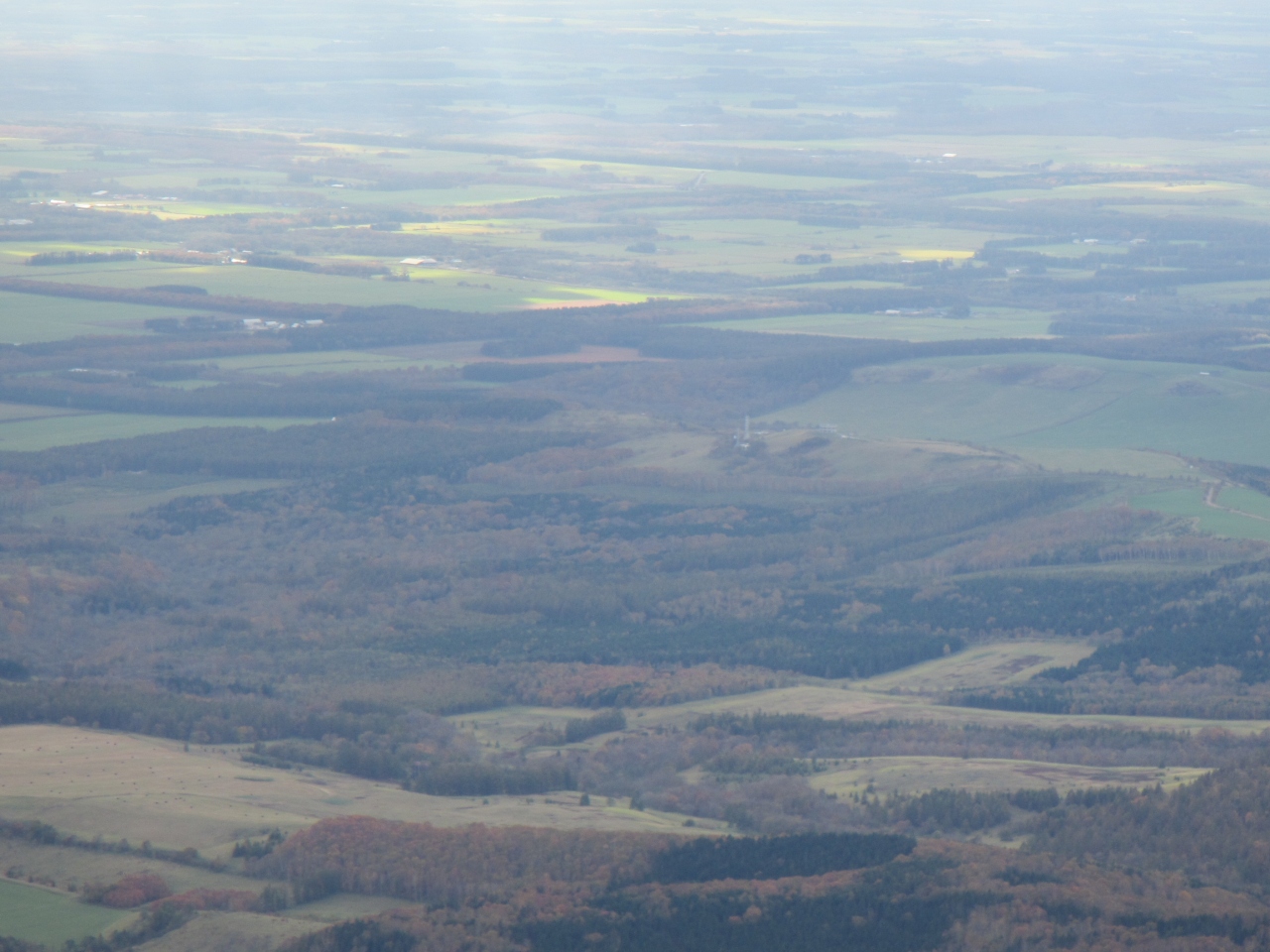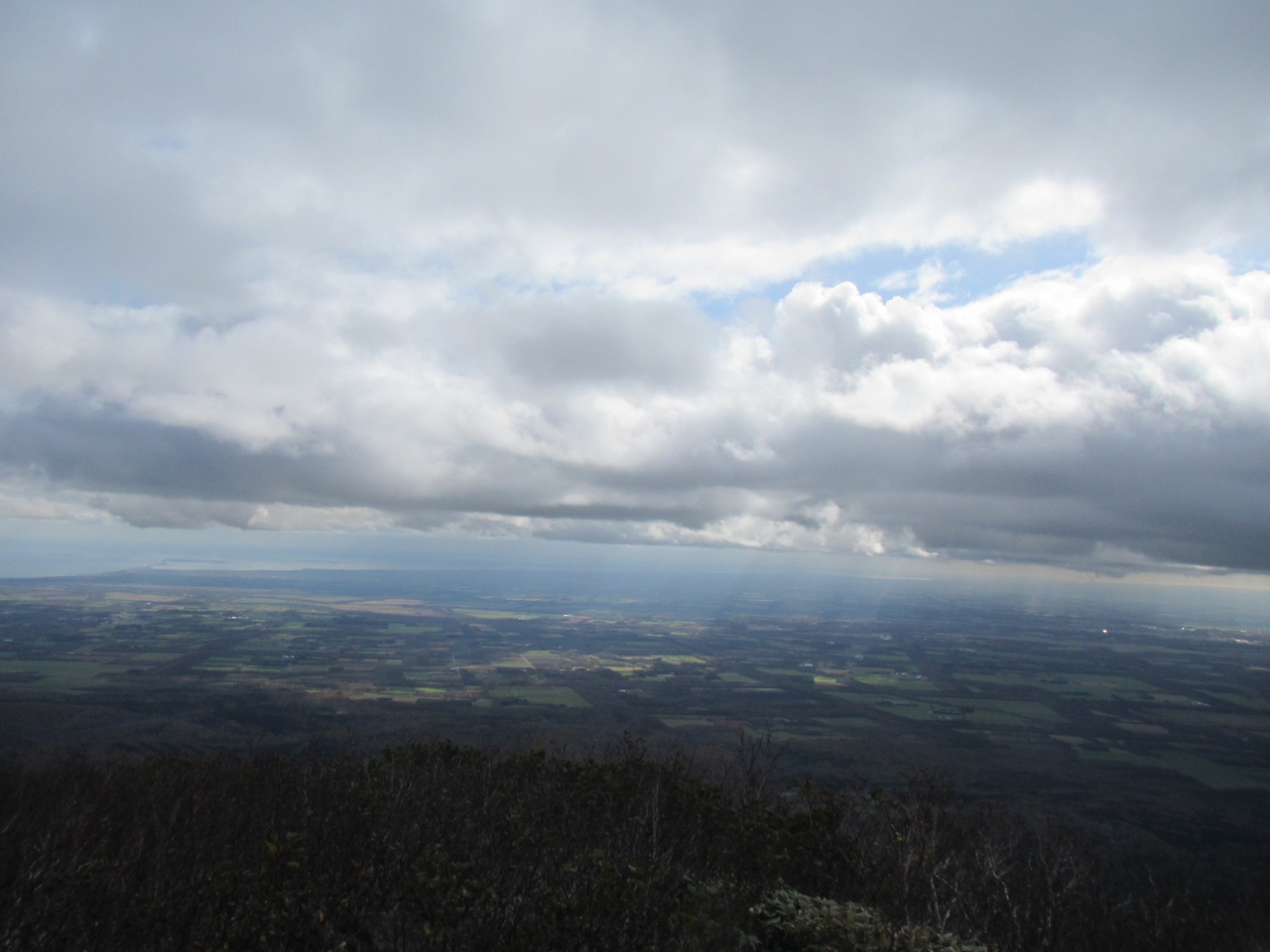 ただ、標高270mの開陽台からでも、まだまだ高さが足りないせいか、きれいな格子状というより、扁平につぶれた角度で、木々に囲まれた畑が幾つもある感じに見えました。