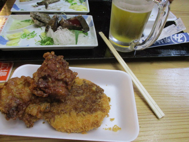夫はビールや塩カツオたたきなど買ったので1000円超えましたが私はハムカツと唐揚げのみで330円ほどで安上がりでした。