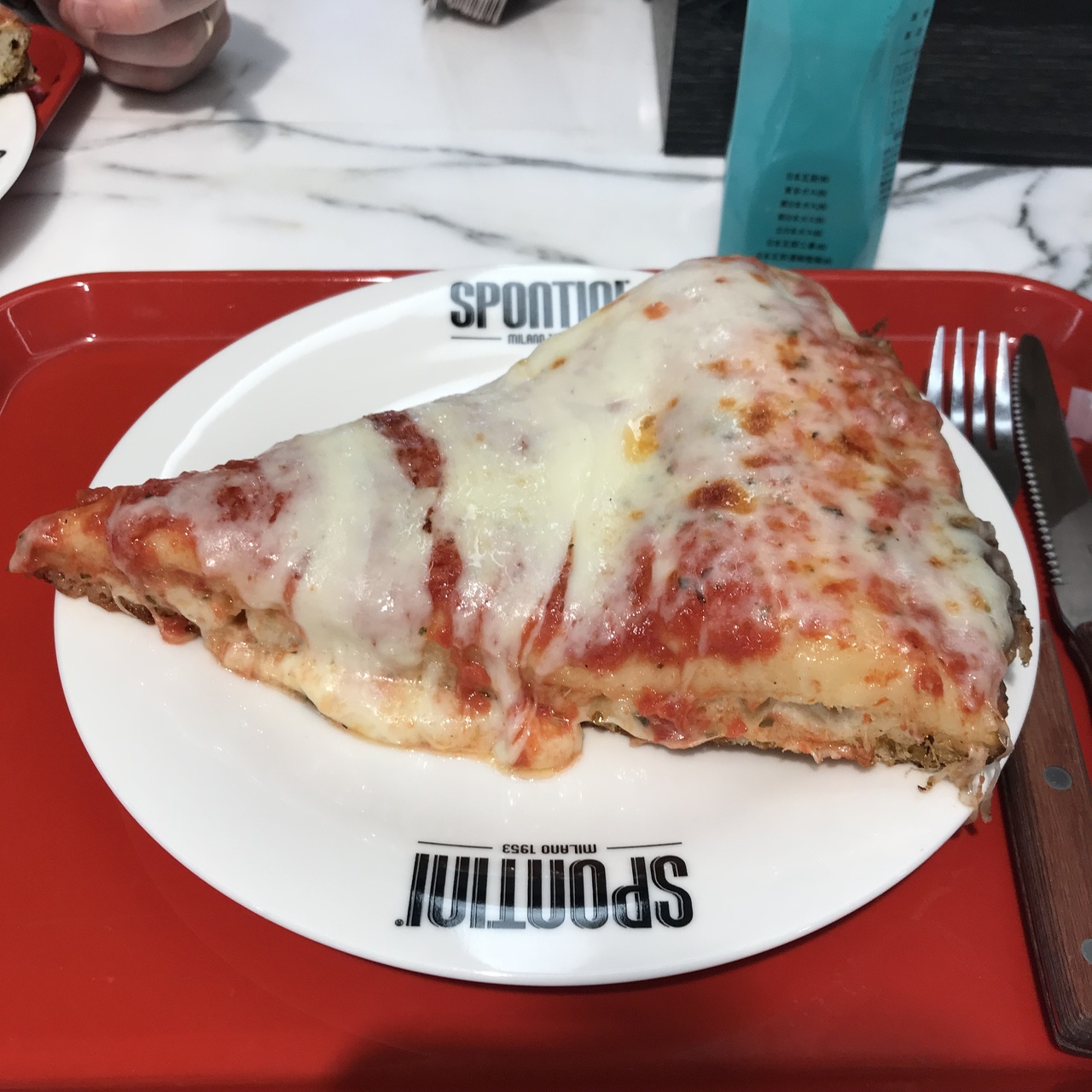 薄目ピザに慣れているとびっくりするけど、パンにピザのトッピングされてるようなイメージかな。