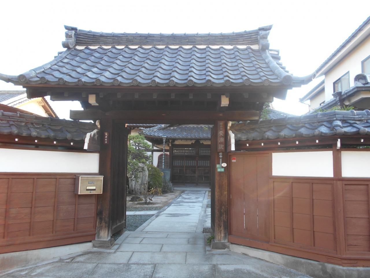 名前は「じゅよういん」と呼ばれ、瓦屋根の立派な山門の奥に古風な本堂が配置されている。