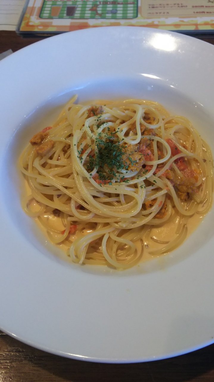 私はうにのパスタを食べました。うにの風味がまろやかでおいしい!