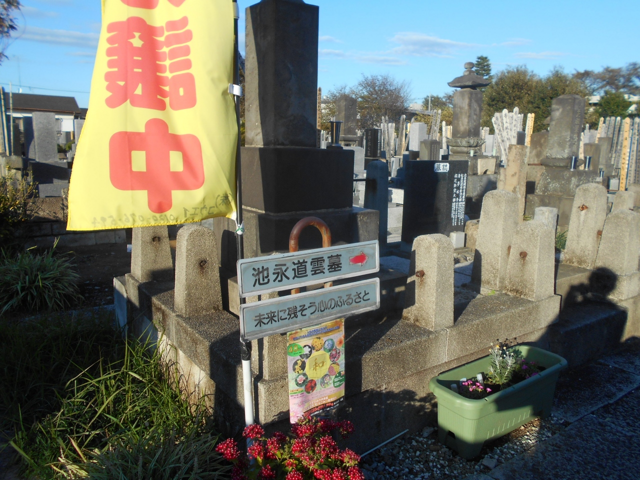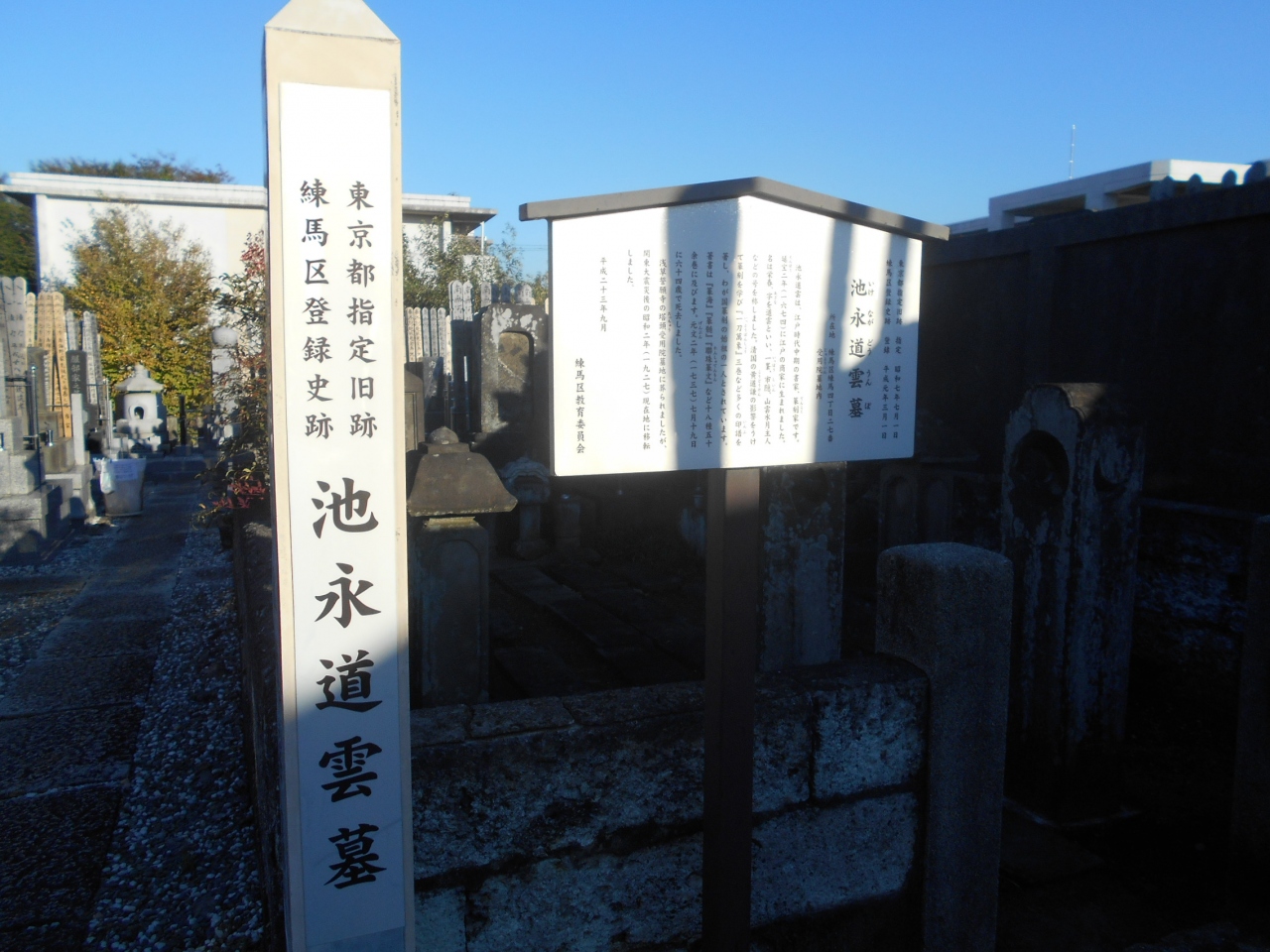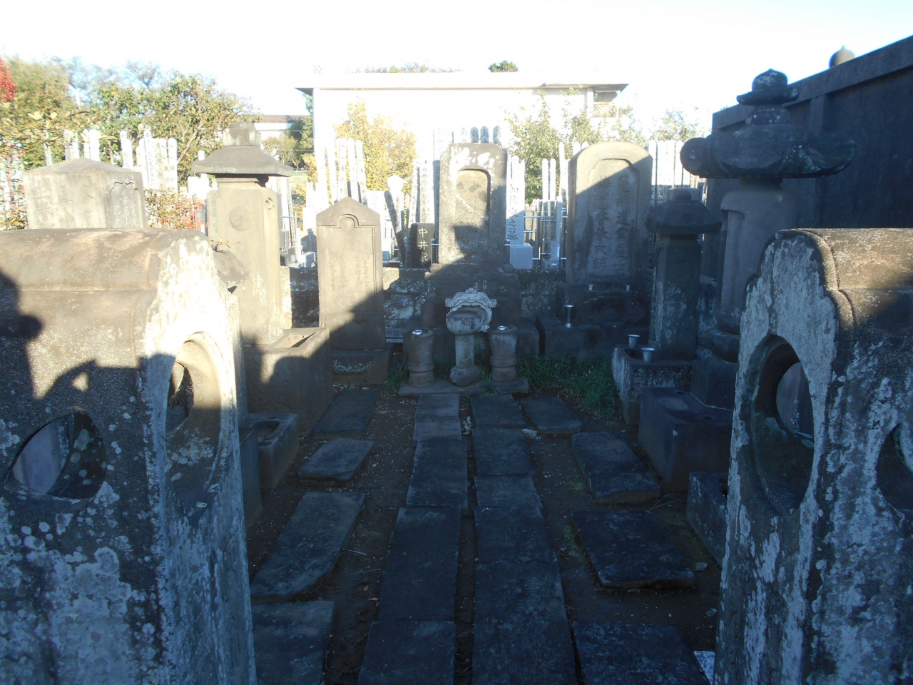 場所は、西武豊島線と都営大江戸線の豊島園駅のすぐ東側、浄土宗十一ケ寺というお寺の集積地のさらに東隣の十一ケ寺合同墓地の受用院 墓地部分の中央にある大きなお墓。(案内板があるので捜しやすい)