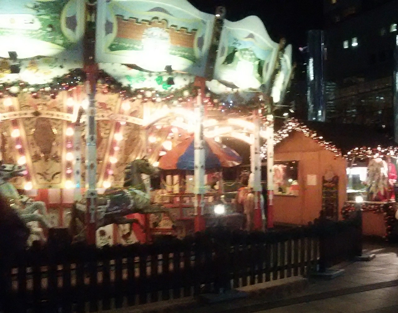 空中庭園が人気の新梅田シティ。こちらで11~12月頃におこなわれるクリスマスマーケットです。空中庭園の真下にあるツリーのイルミネーションも綺麗ですが、この時期だけ設置されるメリーゴーランドがいいですね。マーケットの規模は大きくはありませんが、毎年楽しみに待っている方もいらっしゃるようです。ドイツのマルクトとはまた違った、冬のイベントとして楽しむことができると思います。
