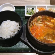 韓国料理のスンドゥブ専門のチェーン店です。スンドゥブの種類が豊富ですし、スープは3種類、辛さも6段階あり、トッピングもでき具材もたくさんありました。普通の辛さの2辛を選びましたが、意外と辛かったです。熱々のスンドゥブ、食べ終わる頃には体がホカホカでした。
