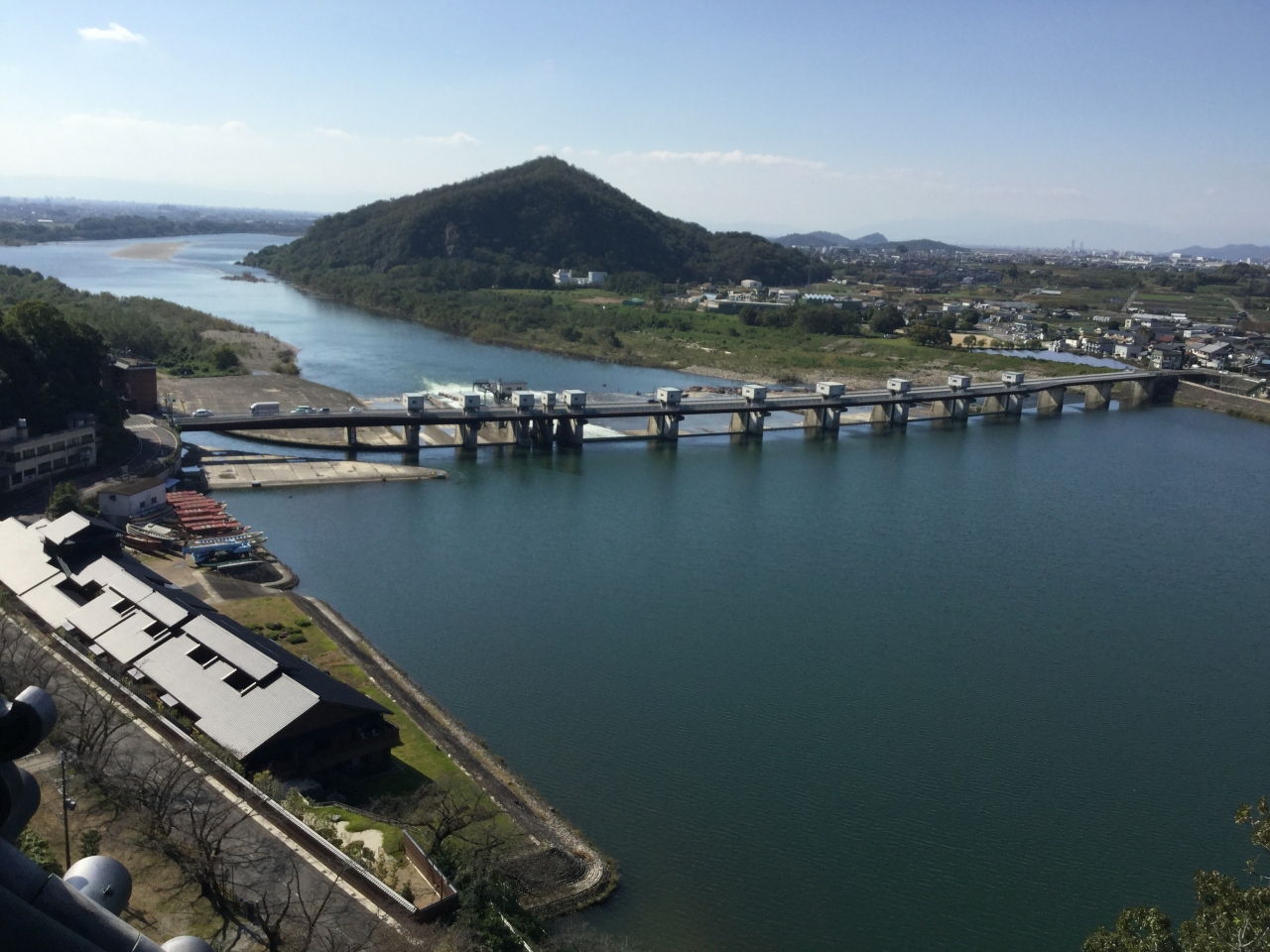 犬山城は名古屋駅から名鉄鉄電車で25分で行けれて、城下町の気分も充分に味わえます。駅から15分程歩くと城下町の町並みの先に犬山城があります。館内に入ると急な階段があって、天守閣まで行くと、なんと軒先き、バルコニー?いうか外に出れて、そこから犬山市内、すぐ下の木曽川を一望出来ます。爽快な眺めですが、軒先きの囲いの位置が低いのでスリル満点です。風が吹いたら、ちょっと怖いです。急な階段といい、子供や高齢者にはキツイかも知れないです。でもお城は立派で心に残る光景でした。