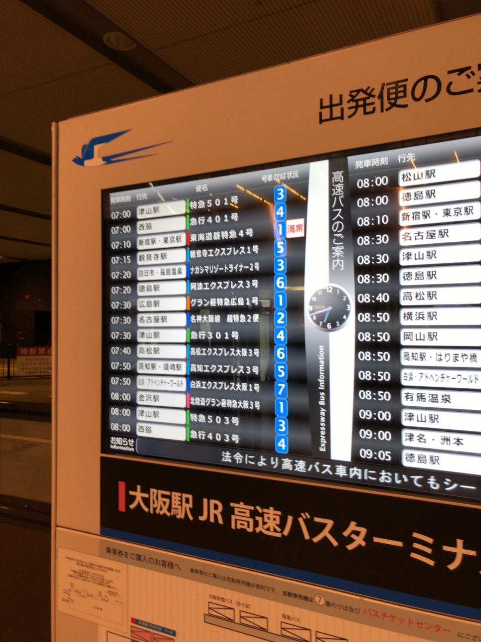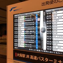 大阪駅から、少なくとも雨に濡れずに行けます。また、早朝や深夜でなければカフェなどもそれなりに近くにありますし、待合室はそれなりのスペースがありました。