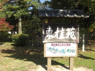 東桂苑という名称は近年になってからの後付けで、もとは渡邉家の分家です。建物内部は拝観料が必要ですが、それ以外は無料です。邸内の庭、というか公園には雑木がうまく配置され、秋になるとドングリ拾いができます。