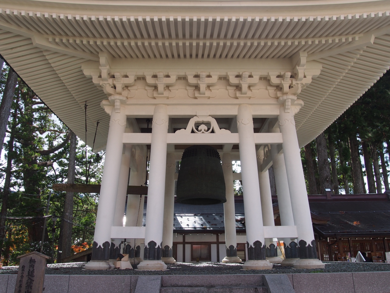 壇上伽藍の敷地の中に大塔の鐘はあります。白いコンクリートの櫓のよう建物中に鐘はあります。鐘の大きさは直径2m大という大きなもので、作られた当時は全国で4番目の大きさでした。鐘のまわりは柵などで囲まれているので、観光客は外観を見るだけです。1日数回鳴らされているので、運がよければ鐘の音が聞けそうです。