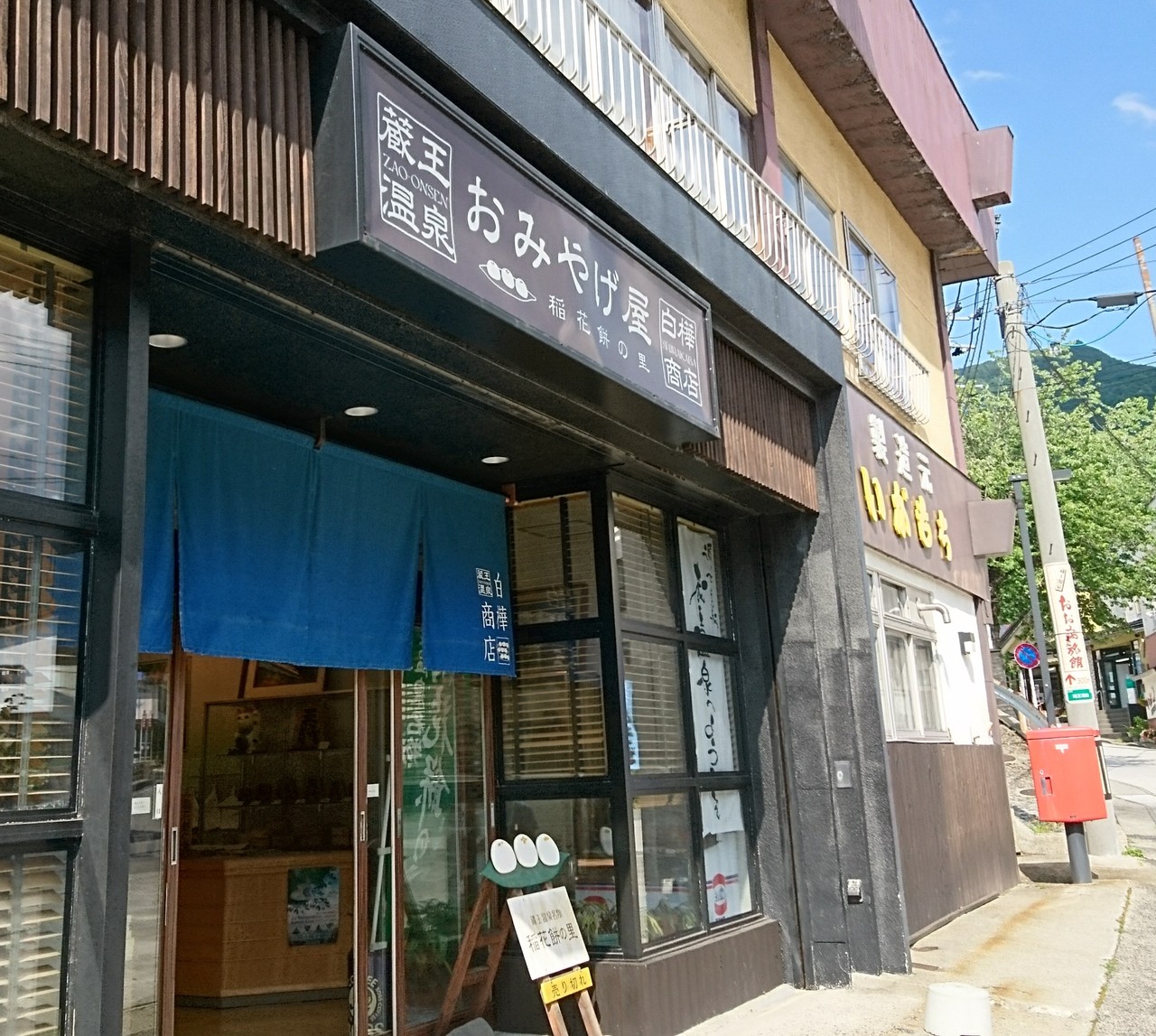蔵王温泉街にある白樺商店はこじんまりとしたお店ですが、いが餅が人気のお店です。