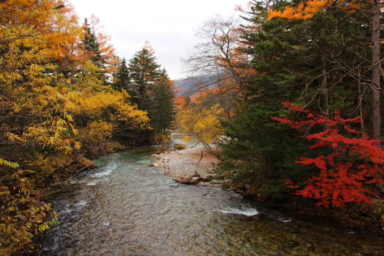 梓川沿いに歩いて行くと、ゆっくりと穂高連峰の姿が見えてくるのは、やはり感動的だろう。