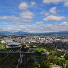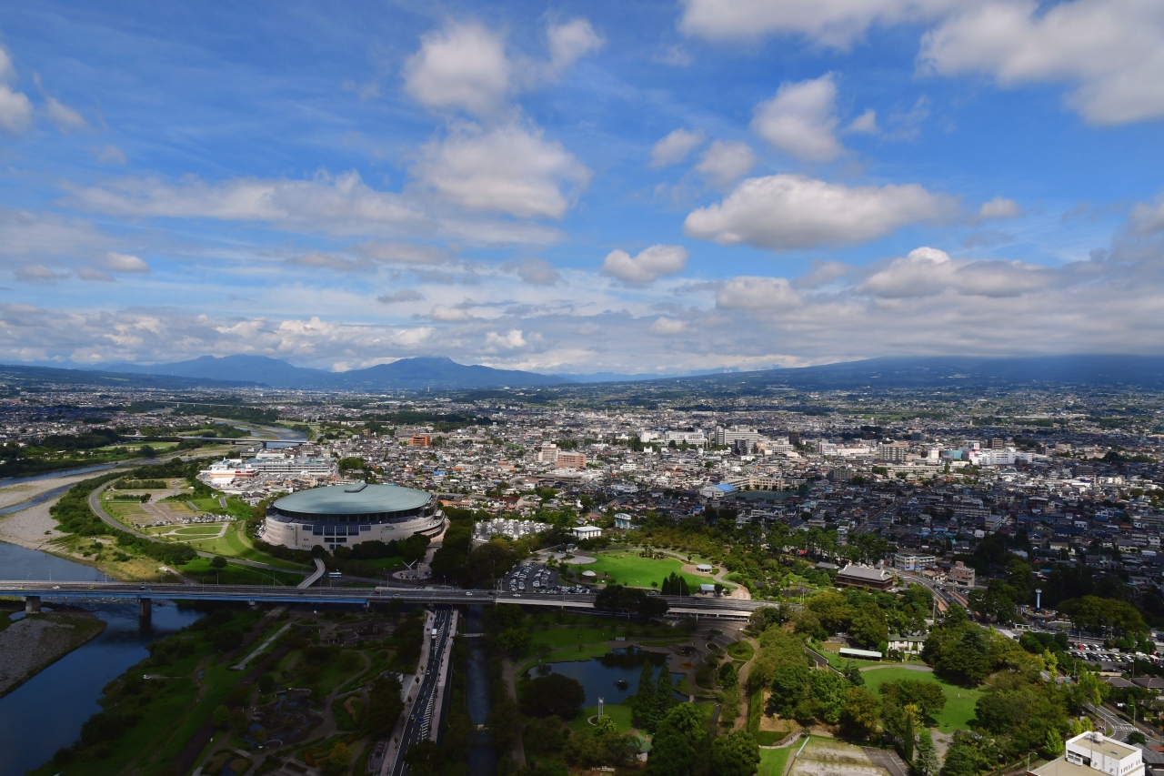 県庁周辺は高層ビルが少ないとあって、前橋市は勿論、赤城山まで一望出来る。