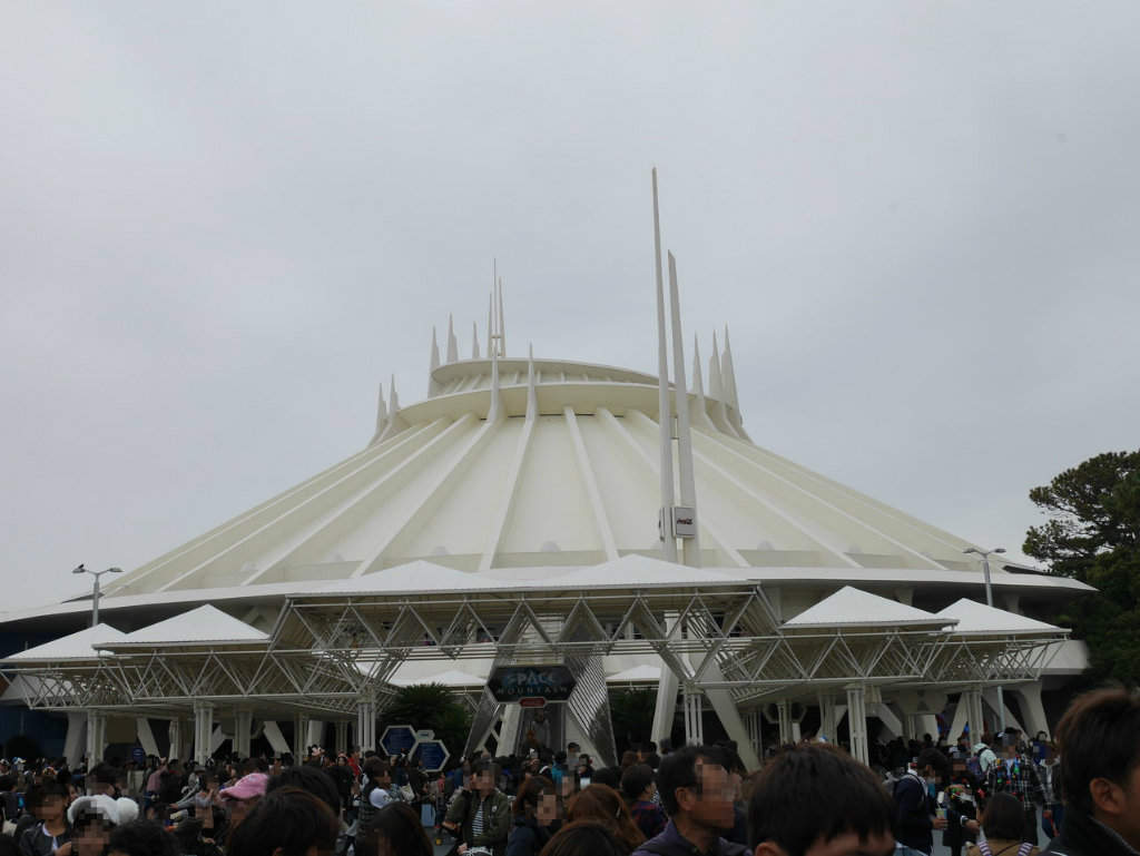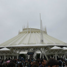 東京ディズニーランドトゥモローランドエリアの白い山のような建物にあります。