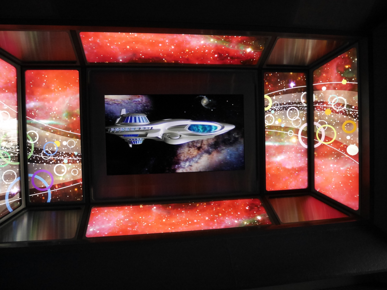 ブルーメタリックのロケットに乗り込んで、宇宙旅行へ出発!