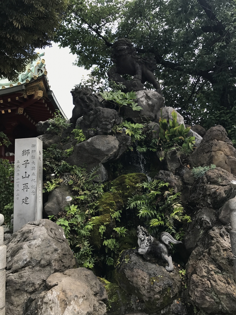 神田明神の獅子山を見ると、成田山の獅子山を思い出します。どちらも迫力があって立派です。ちなみに神田明神の獅子は、親獅子が江戸後期作られた当初の物で、子獅子は後年再建されたもの。それを知ると、親獅子の方が、年期を感じます。色が全然違いますものね。