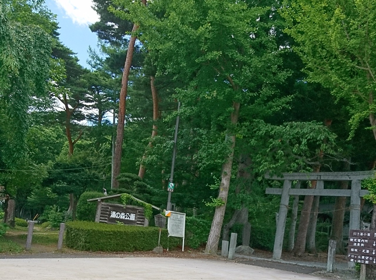 湯の森公園は岳温泉の温泉神社に隣接し、くぬぎ、ひのき等がある緑が多く、せせらぎがあって心落ち着く公園です。あずまやもあるので温泉入ったあと散策も楽しめる公園です。