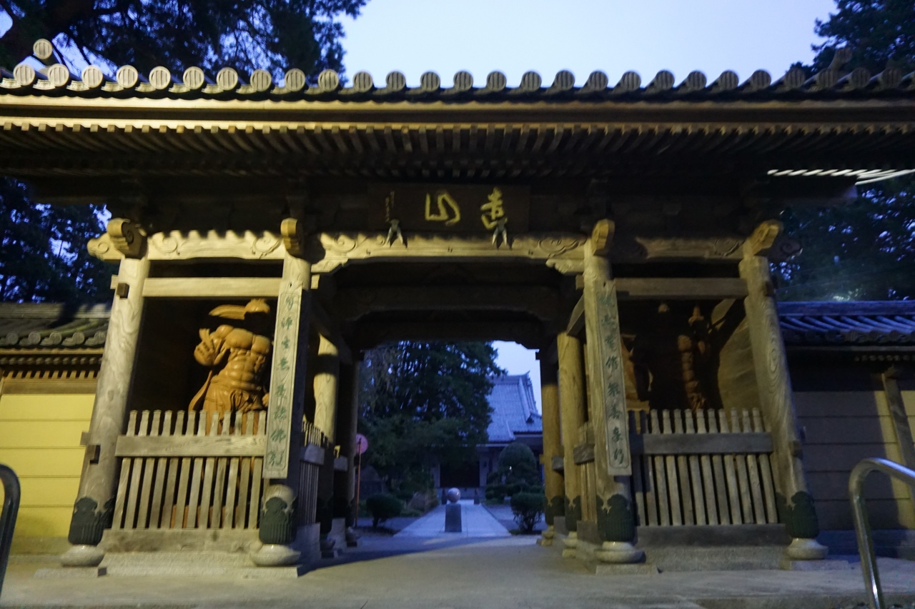 入口の仁王門がなかなかの迫力。筋肉隆々の艶々した仁王像が門からはみ出しそうになりながら立っています。