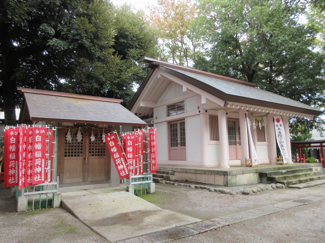 西永福駅から20分ほど歩いたところにあります。善福寺川に架かる大成橋を北に渡った住宅街にあります。石造鳥居の先にコンクリート造りの社殿が建っています。社務所はシャッターが閉まっていて人の気配がありませんでした。社殿の左に赤い幟が多く立っている小さな白幡稲荷神社があります。説明板がなく、社殿の外壁に900年記念事業が平成21年に行われ奉納者名が記されたプレートがありました。古くからこの地にある神社であることがわかりました。境内は枯葉が落ちていてがらんとした寂しい雰囲気でした。特に見どころがないので和田堀公園や善福寺川緑地を散策したついでに寄る程度でいいと思います。