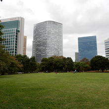 隣がボタン園とお花畑、内堀向こうには花木園と緑に囲まれたスペースなので、