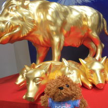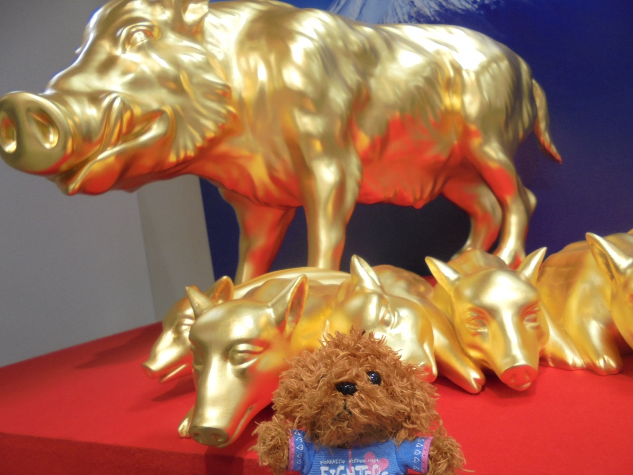 写真OKでした。来年の干支の金のイノシシとも写真を撮りました。