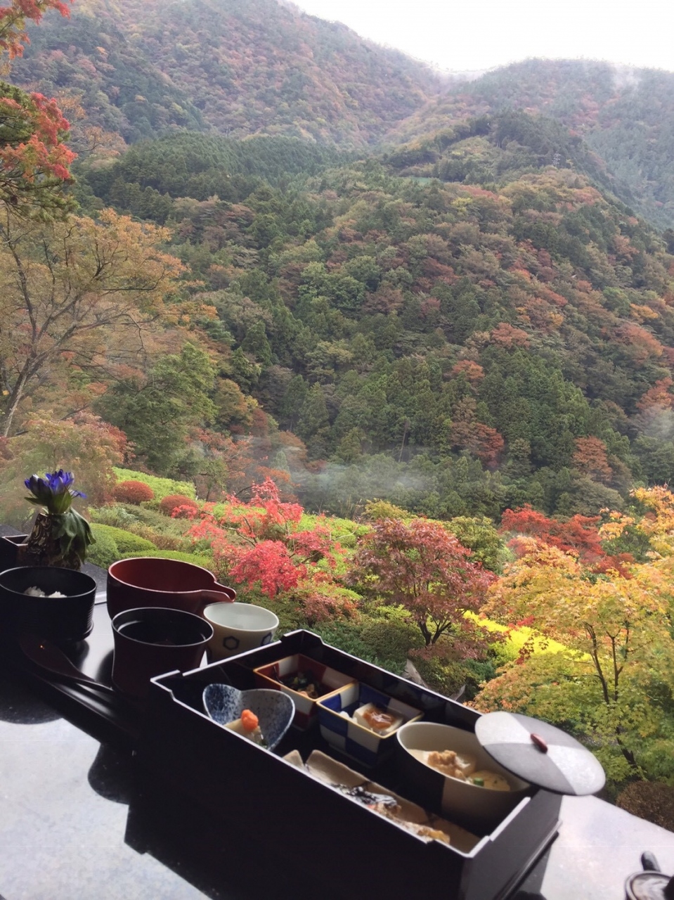 小洒落た感じの朝食膳に仕上がっており、ご飯と味噌汁はおかわりできるそうです。目の前に広がる箱根連山の絶景が、食事をより一層美味しくしてくれました。