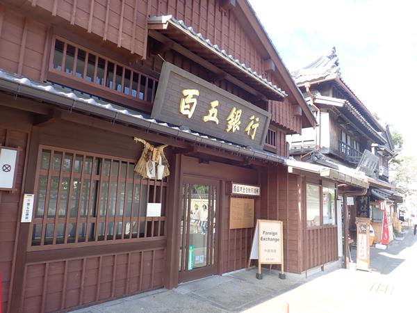 内宮から離れるにしたがって店舗の数は減っていきますが、銀行や郵便局の建物も周囲の景観に溶け込んだ歴史を感じさせる建物になっていました。