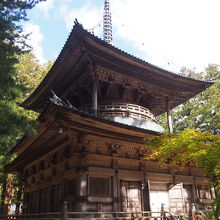西塔は壇上伽藍の北西側の端に位置して建っています。西塔のうしろは巨木の生い茂る森のようになっていて神秘的名雰囲気もあります。塔は2重構造をしており、高さは27mの高さがある多宝塔です。本尊の金剛界大日如来像は重要文化財に指定されています。実物は霊宝館で見学できました。