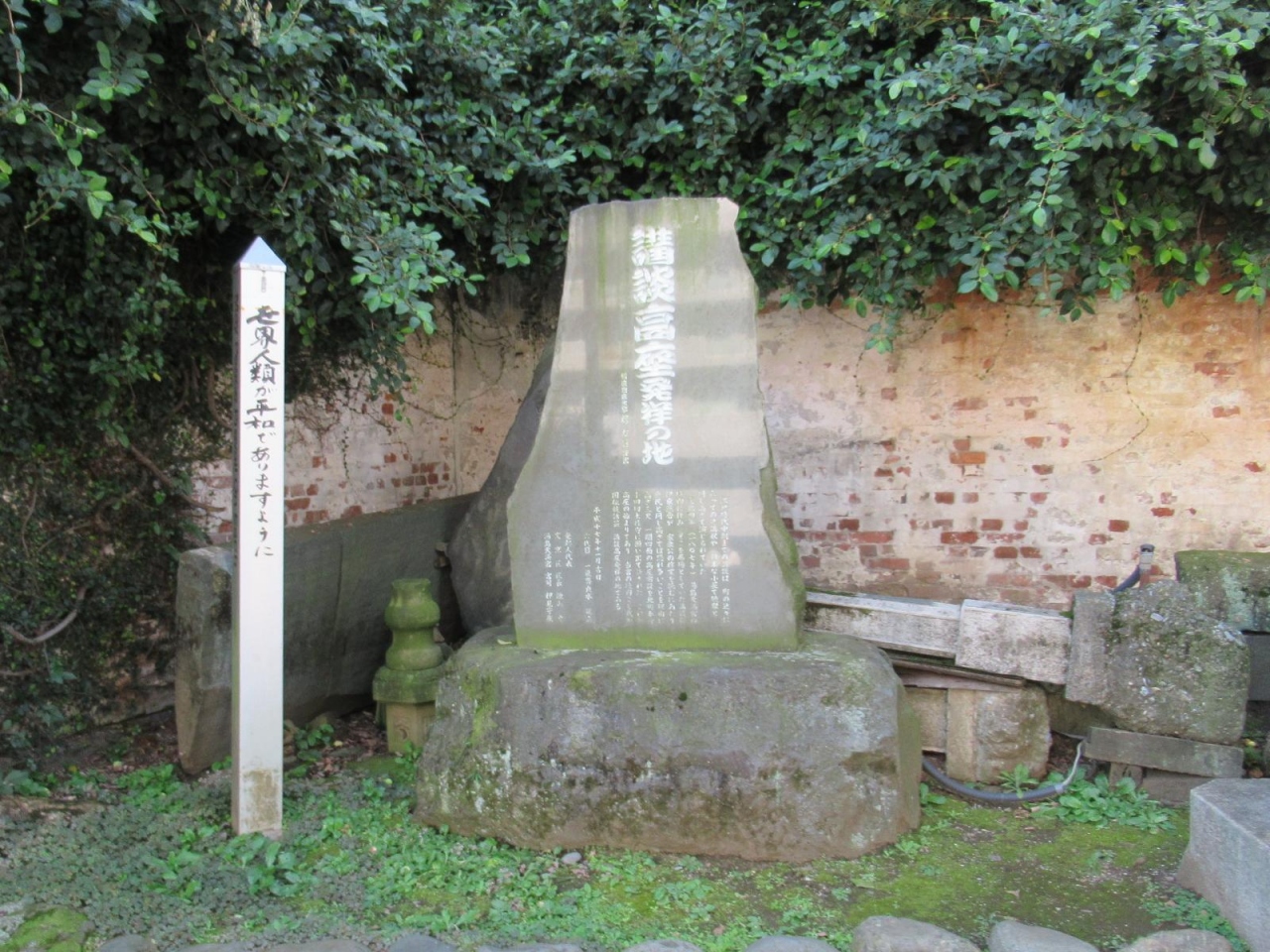秋晴れの気持ち良い日だったので文京区湯島3丁目にある湯島天満宮を訪ねた折、境内に数多くの記念碑があるので回ってみることにし、その一つがここ講談高座発祥の地碑です。
