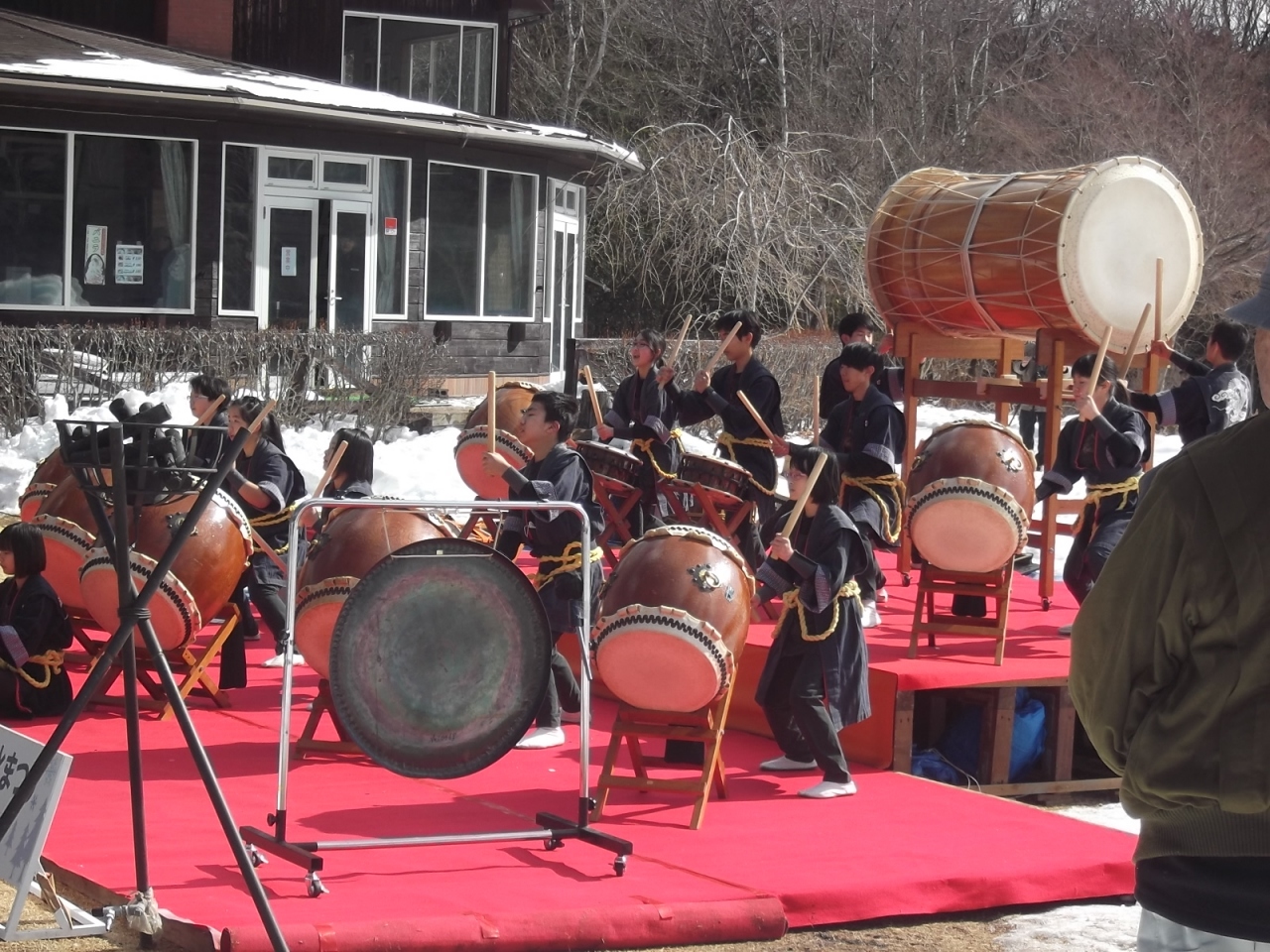特設のステージでイベントとして地元の中学校の生徒さん、その卒業生の方たちによる太鼓の演奏がありました。これが予想をはるかに上回る素晴らしさで、氷のオブジェよりむしろこちらの方が心に残ったかも(笑)。