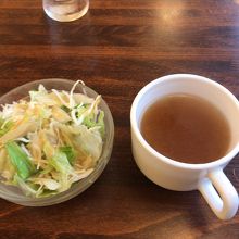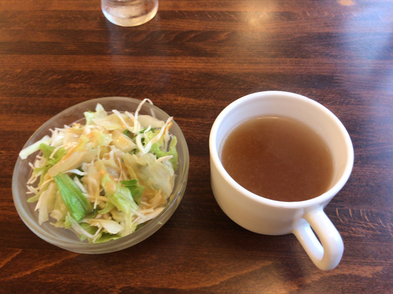 サラダ、スープ付ライスはお代わりOKでご機嫌